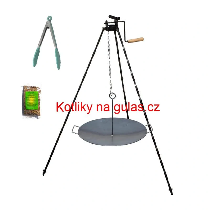 - Grilovací souprava CLASSIC STEEL PRO: Trojnožka 1,2m s kladkou + Železná pánev 49 cm