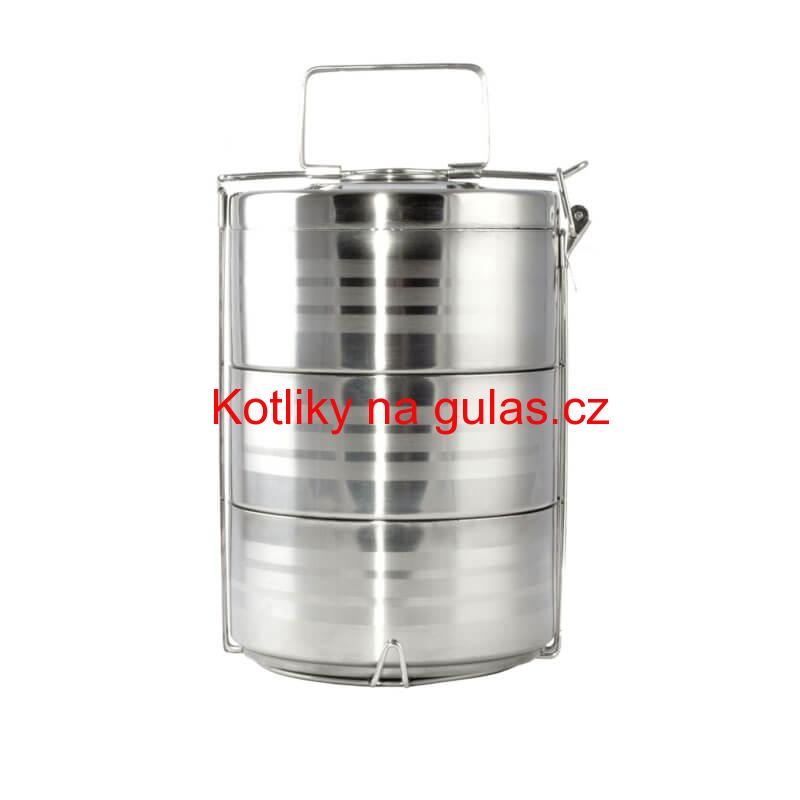 Třípatrový termo jídlonosič v nerezovém provedení.