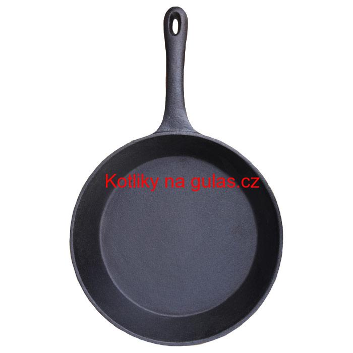 Kvalitni litinová pánev. Pánev je vyrobena s čisté litiny, s jednoho kusu (pánev + ručka), bez povrchové úpravy.