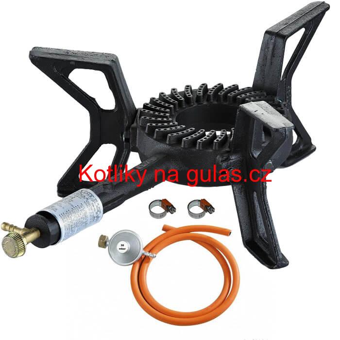Jednohorákový celolitinový vařič na propan-butan s plynulou regulací výkonu, vhodný pro vaření s požadavkem vysokého výkonu nebo třeba v domácí "druhé kuchyni", v přírodě, na zabijačkách, na grilovačku. Tři litinové nožičky jsou demontovatelné.